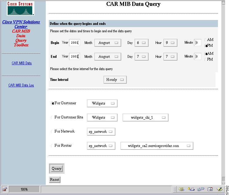 Choose CAR MIB Data Query Tool. The CAR MIB Data Query Tool page appears.