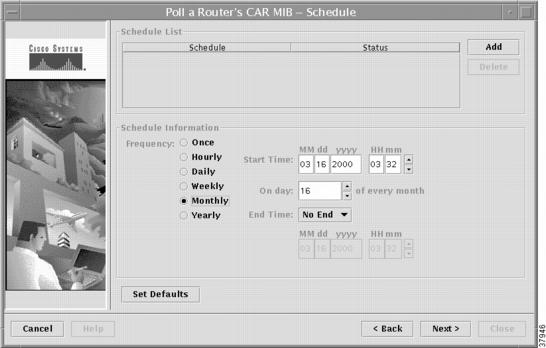 Figure 13-9 Sample Schedule Window—Frequency: Monthly