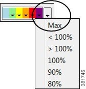 Click the green drop-down arrow in the Utilization Color menu. The range indicates that if an interface is green, its traffic utilization is between 30-50%. ![]() |