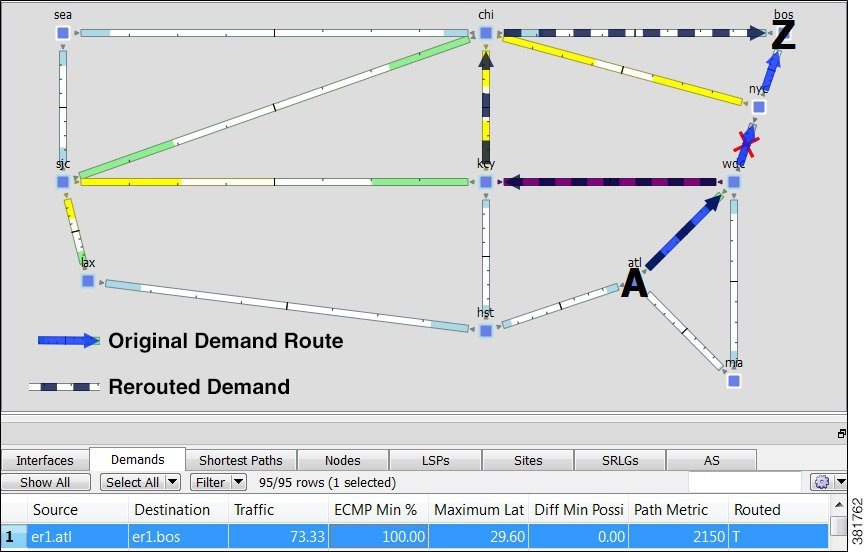 Click the er1.atl to er1.bos (first) demand to see its route. The solid blue arrow shows the demand path. |