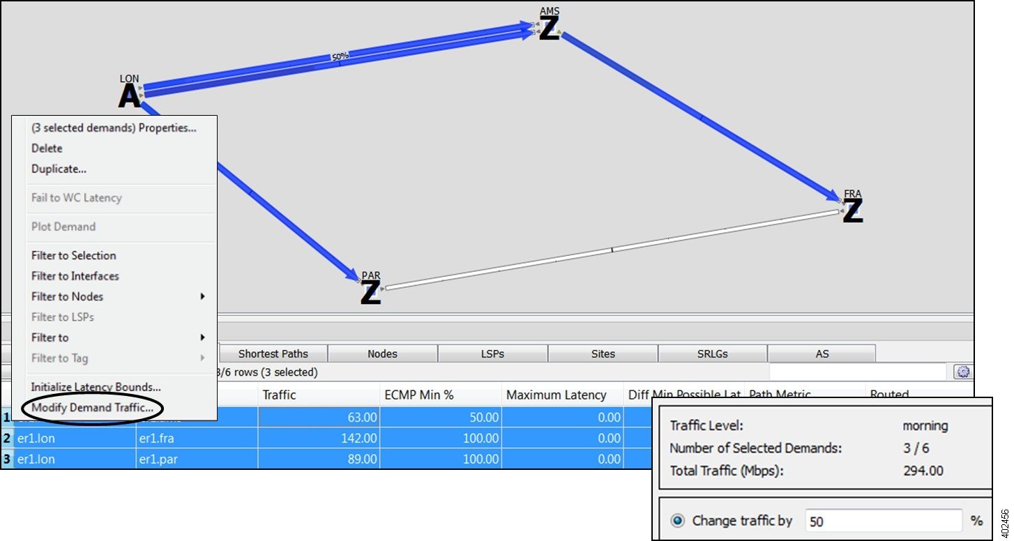 For instance, you might increase demand traffic to plan for future traffic growth by simulating an overall traffic growth trend. Another example use might be to determine the network impact of an anticipated increase in sales of a particular service, such as video on demand.