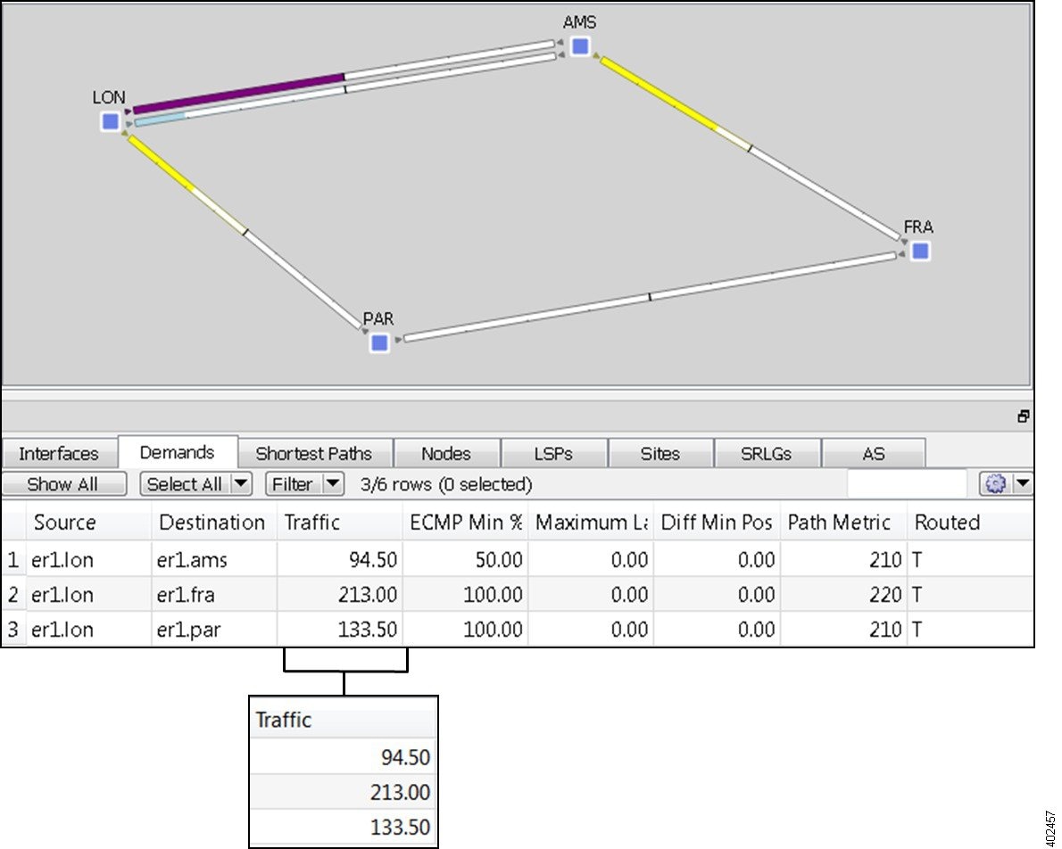 Read the Traffic column values to determine how much traffic each demand is attempting to route. |
