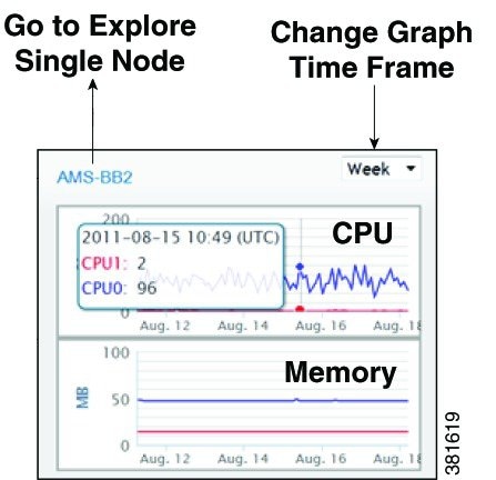 To graph node CPU and memory usage, click its parent site. From here you can graph usage for this particular node, or you can go to the Explore tables for one or more nodes in the site.