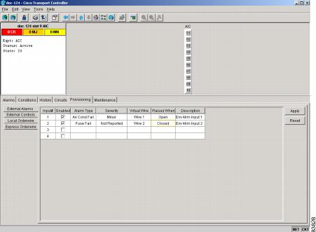 If you are provisioning external alarms, click the External Alarms tab (Figure 7-17). If you are not provisioning external alarms, skip Steps 5-7 and go to Step 9.