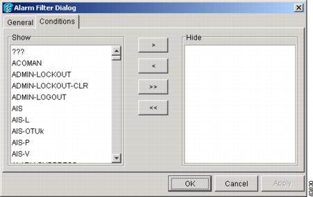 To move conditions collectively from the Show list to the Hide list, click the >> button.