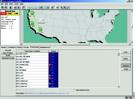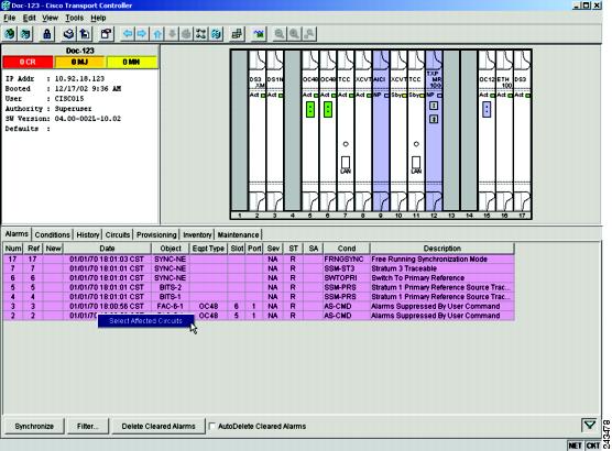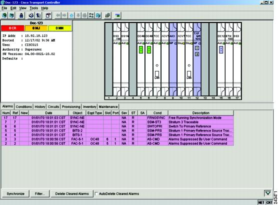 At the node (default login), network, or card-level view, click the Alarms tab (Figure 7-3).