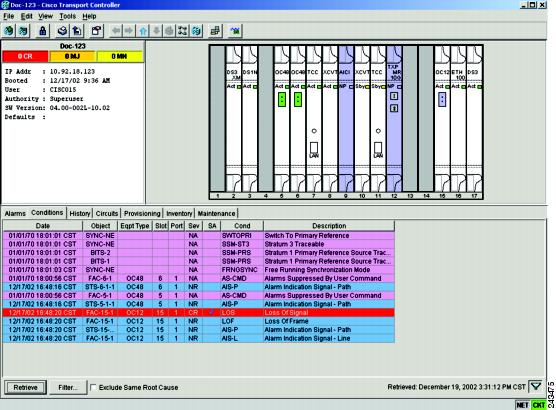 This chapter explains how to view and manage the alarms and conditions on a Cisco ONS 15454.
