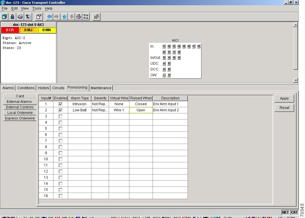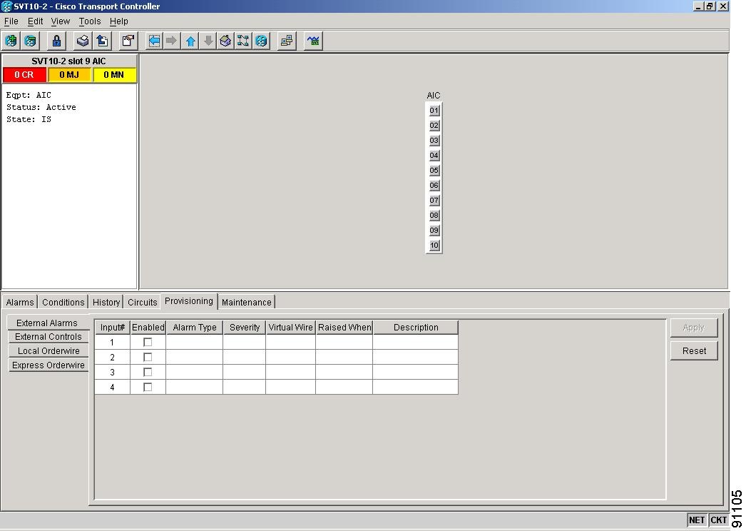 Figure 11-6 Provisioning External Alarms on the AIC-I Card