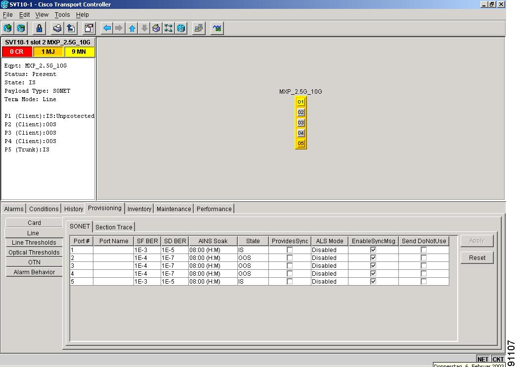Depending on the setting you need to modify, click the Line, Line Thrshld, Elect Path Thrshld, or Sonet Thrshld tab.