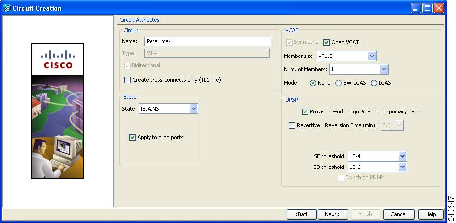 Circuit Type—Choose VT or STS. If you are creating an open-ended path protection circuit to route VT traffic across an ONS 15600 hub node with mixed protection domains, choose VT.