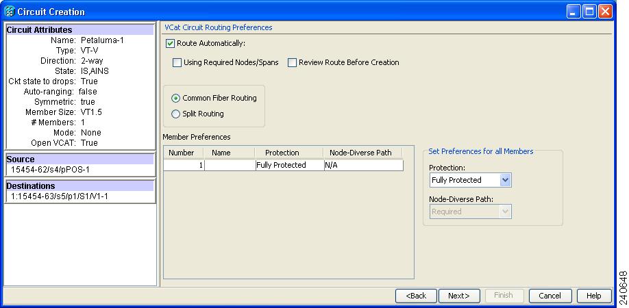 If the VCAT circuit does not have a source or destination on a CE-MR-10 card, common routing is automatically selected and you cannot change it.