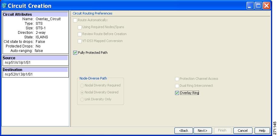 If specify the number of circuits as more than 1 and if the auto-ranged check box is selected, the Route Automatically check box in the Circuit Routing Preferences area is automatically checked; this prevents you from creating an overlay ring circuit.