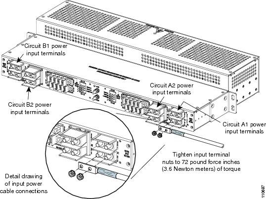 Each side (Side A or Side B) has two power inputs. You must remove both power inputs from the side you are replacing in order for that side to be powered down.