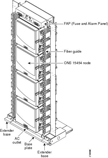 The Cisco ONS 15454 four-shelf and zero-shelf bay assemblies provide a dual-feed, prewired TPA-type fuse and alarm panel, two vertical fiber ducts, and two 5-inch (12.7-cm) vertical extenders and extender bases. The four-shelf bay assembly also provides a preinstalled, four-shelf configuration that includes four ONS 15454 shelf assemblies with electrical interface assembly (EIA) panels or EIA blank cover panels.