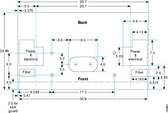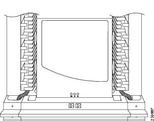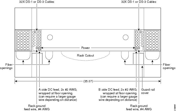 You can use the base plate or extender base holes to route the fibers. Cisco recommends using the base plate holes for the bottom node and the extender base holes for the other three nodes on the four-node rack. All electrical cables will be routed in the back of the rack in the extender bases. Holes should already be cut out in the raised floor tile to compensate for any DS-1, DS-3, ground, and power cables.