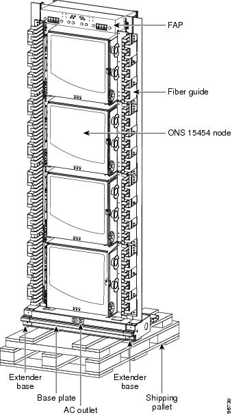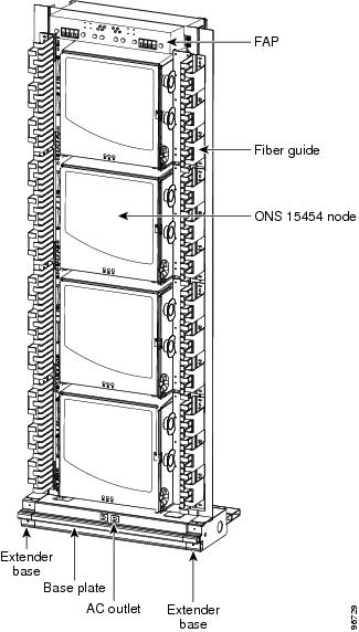 The Cisco ONS 15454 four-shelf and zero-shelf bay assemblies provide a dual-feed, pre-wired TPA-type fuse and alarm panel, two vertical fiber ducts, and two 2.38-inch vertical extenders and extender bases. The four-shelf bay assembly also provides a pre-installed, four-shelf configuration that includes four ONS 15454 shelf assemblies with electrical interface assembly (EIA) panels or EIA blank cover panels.