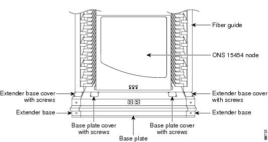 The 15454 Bay Extender Kit provides rear cable protection, additional cable management space and includes a 2.38-inch vertical extender (Figure 32) and extender base (Figure 33 and Figure 34).