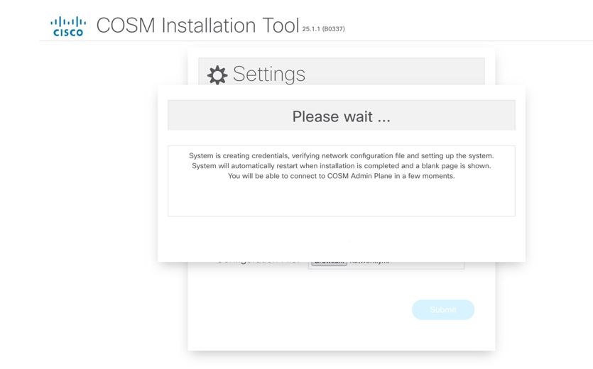 After the installation completes, a blank web page appears, indicating that the COSM Admin Plane has successfully started.