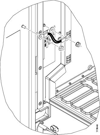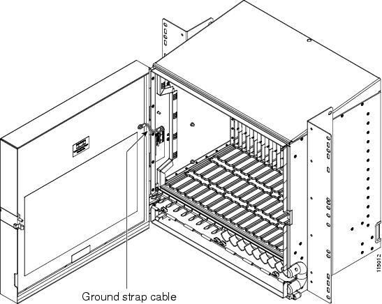 To avoid interference with the traffic (line) card, make sure the ground strap is in a flat position when the door is open. To move the ground strap into a flat position, rotate the terminal lug counterclockwise before tightening the Kepnut.