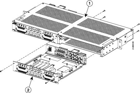 Slide in the new module and fasten it in the chassis using the same eight screws.