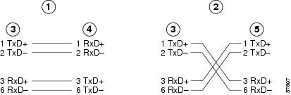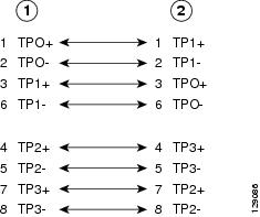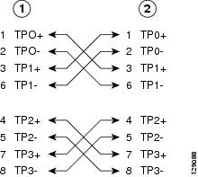 Depending on your RJ-45 interface cabling requirements, use the pinouts shown in Figure A-2 and Figure A-3 for Gigabit Ethernet straight-through and crossover twisted-pair cable connections. Use Figure A-4 for Ethernet/Fast Ethernet straight-through and crossover twisted-pair cable connections.