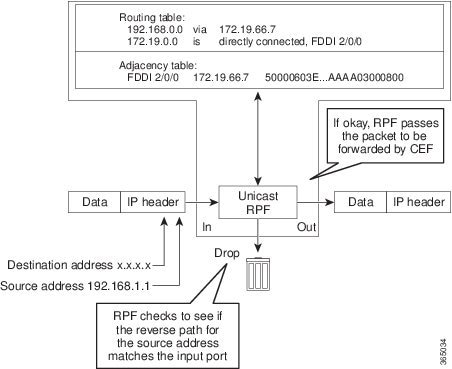 reverse lookup in the Cisco Express Forwarding table to check if any packet