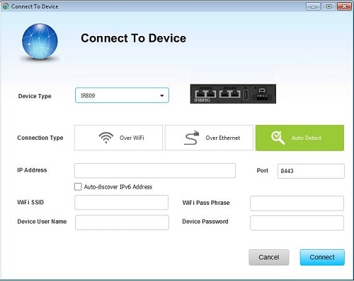 - Select the Connection Type: Over WiFi , Over Ethernet , or Auto Detect .
