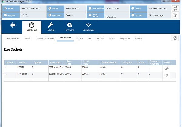 On the Device Manager main page (Dashboard), click the RawSocketssub-tab.