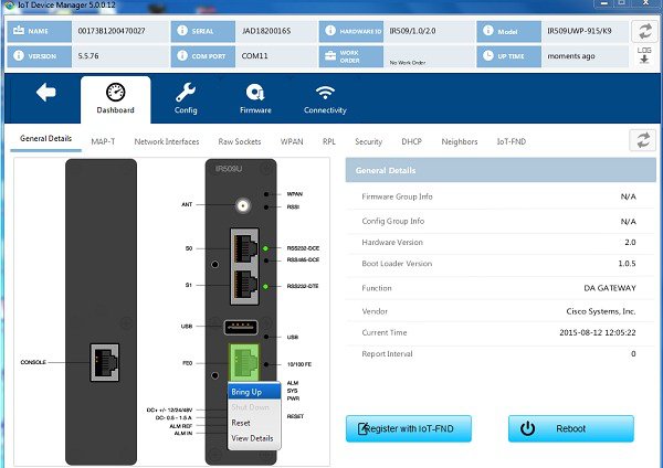 Operating with IoT-FND—When you have IoT-FND operating in the network, you can connect to that system with Device Manager