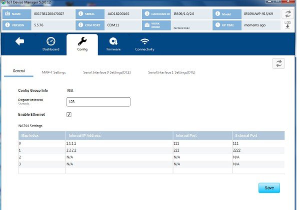 MAP-T IPv6 Address: Contains the IPv4 address used by devices external to the MAP-T domain to communicate with the IR500 Raw