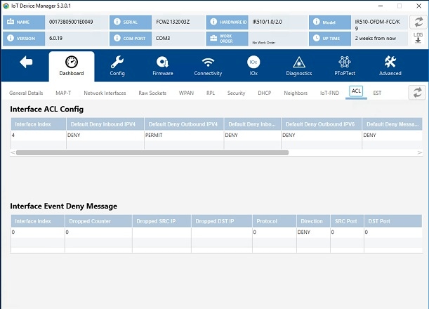 When connecting to the IR500 without a work order, you cannot change the device configuration or send data to IoT-FND.