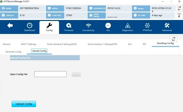 Linux node on the IR500 device should have UDP server running on 8335 port which will be used to connect via IOT-DM Client