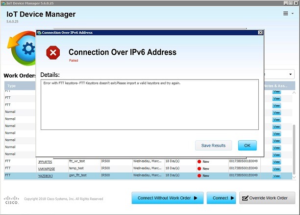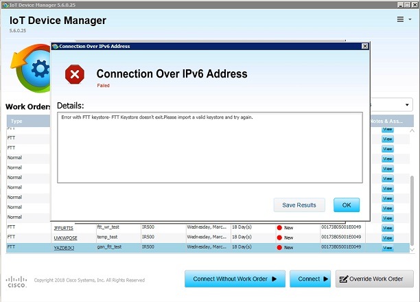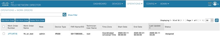 To connect to the router with a work order, select a work order from the list on the Device Manager opening page and click