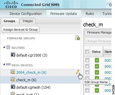 In the FIRMWARE GROUPS pane, select the mesh device firmware group.