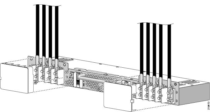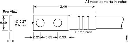 DC power cables must be terminated by cable lugs at the power-shelf end. The lugs should be dual hole and able to fit over M6 terminal studs at 0.625-in (15.88-mm) centers (for example, Panduit part number LCD2-14A-Q or equivalent) (see Figure 2-9).