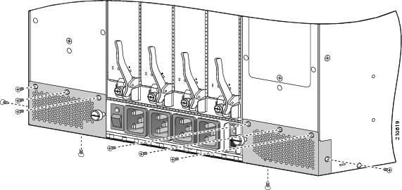 After performing this task, you may install a replacement power shelf (see the "Installing an AC Power Shelf" section), install the power supplies (see the "Installing a Power Supply" section), and replace any front chassis cosmetic covers.