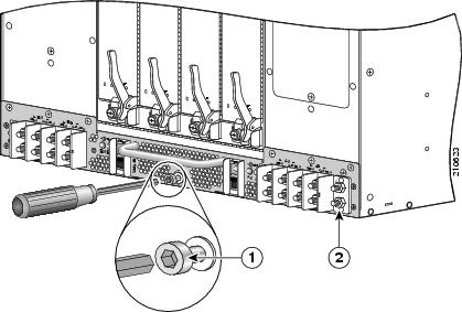 With a 5-mm Allen wrench, loosen the power shelf coupling screw (see item 1 in Figure 2-20). This will allow you to remove the DC power input shelf from the chassis (as described below).