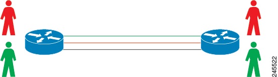 traffic isolation between different groups. The figure below shows two user groups, Red and Green, running on the same network.