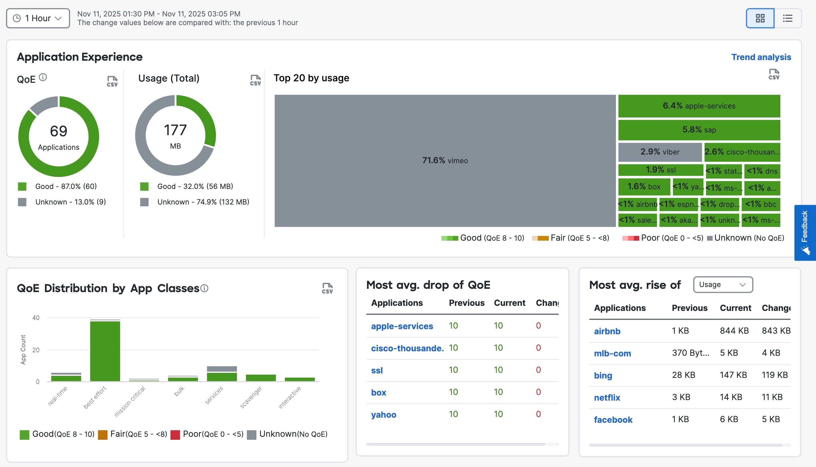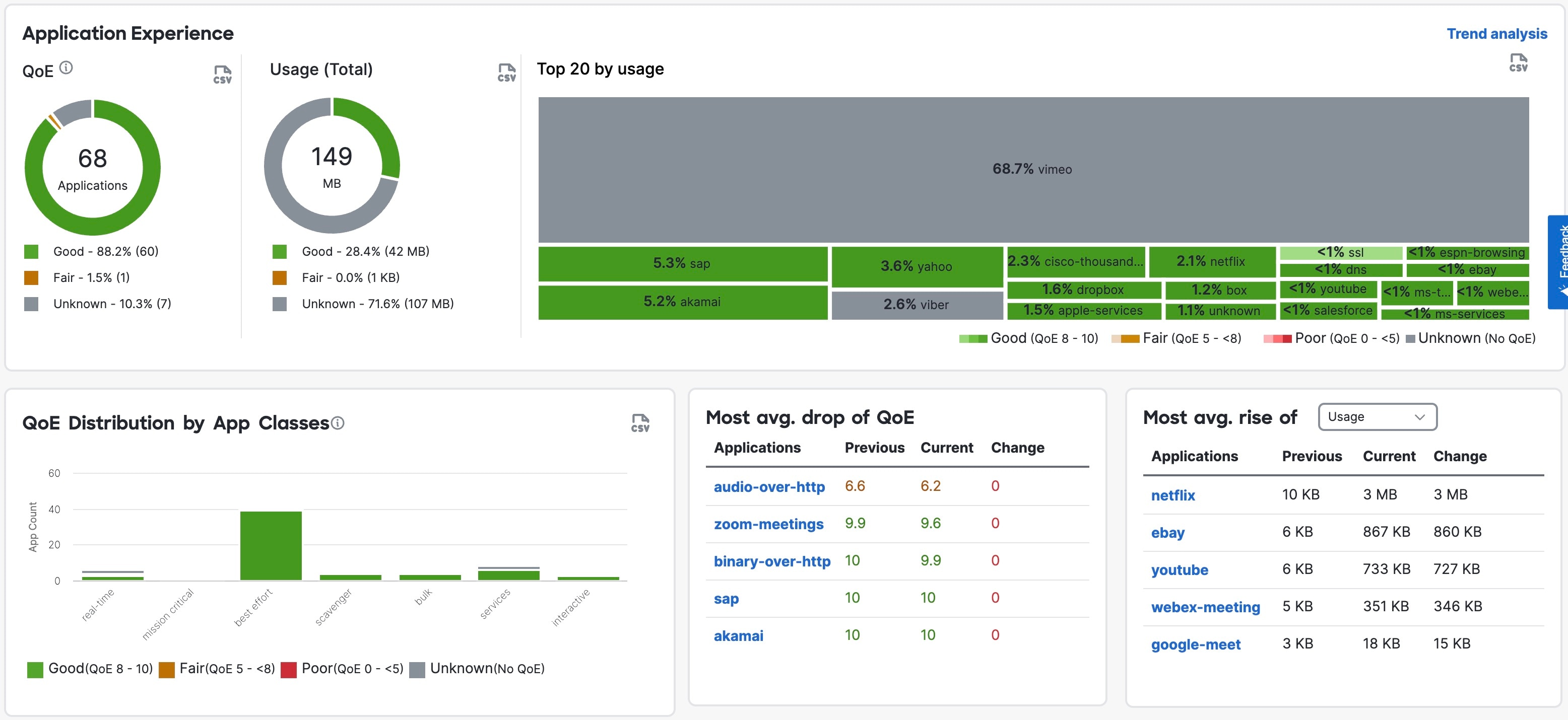 and Direct Internet Access (DIA), and provides more details about the application traffic.