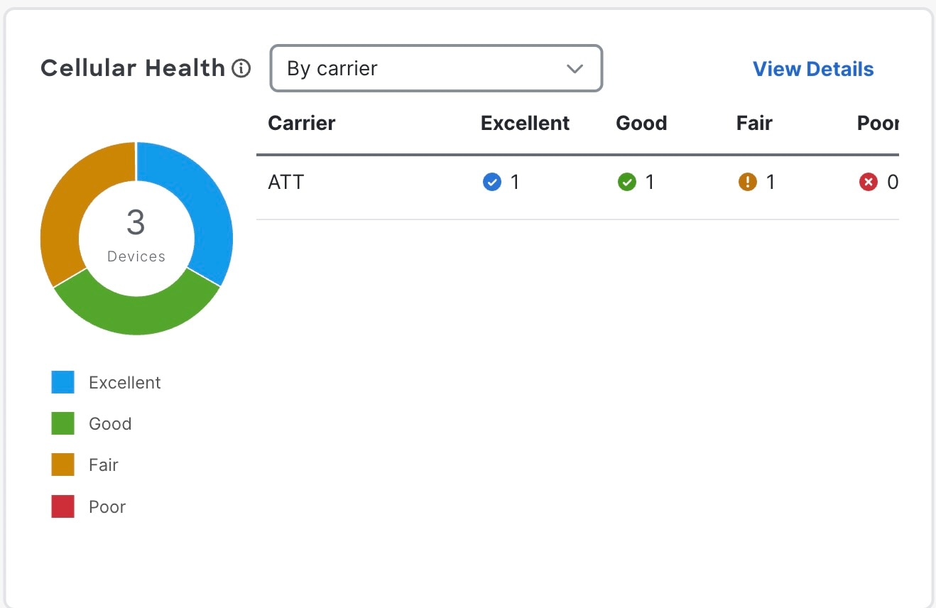 a holistic view of cellular connectivity health. In addition, you can filter the device list to specifically display cellular-enabled
