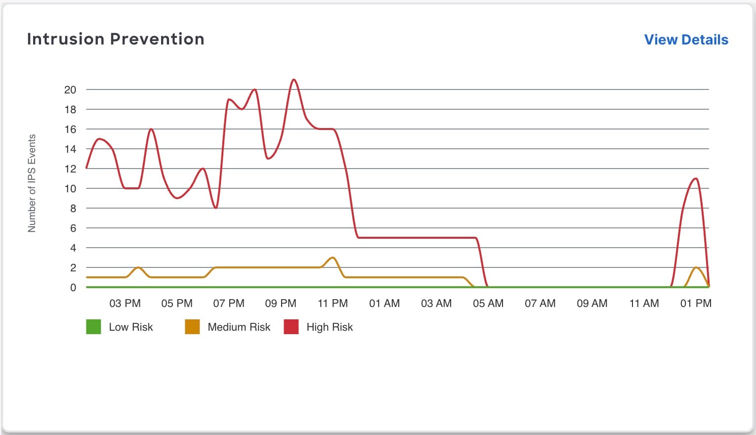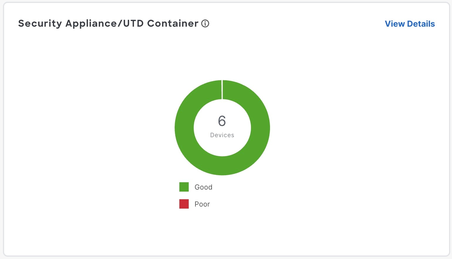 A Security Appliance/UTD Container dashlet is added to monitor the health status of the Firewall and UTD components, such as the Cisco Intrusion Prevention