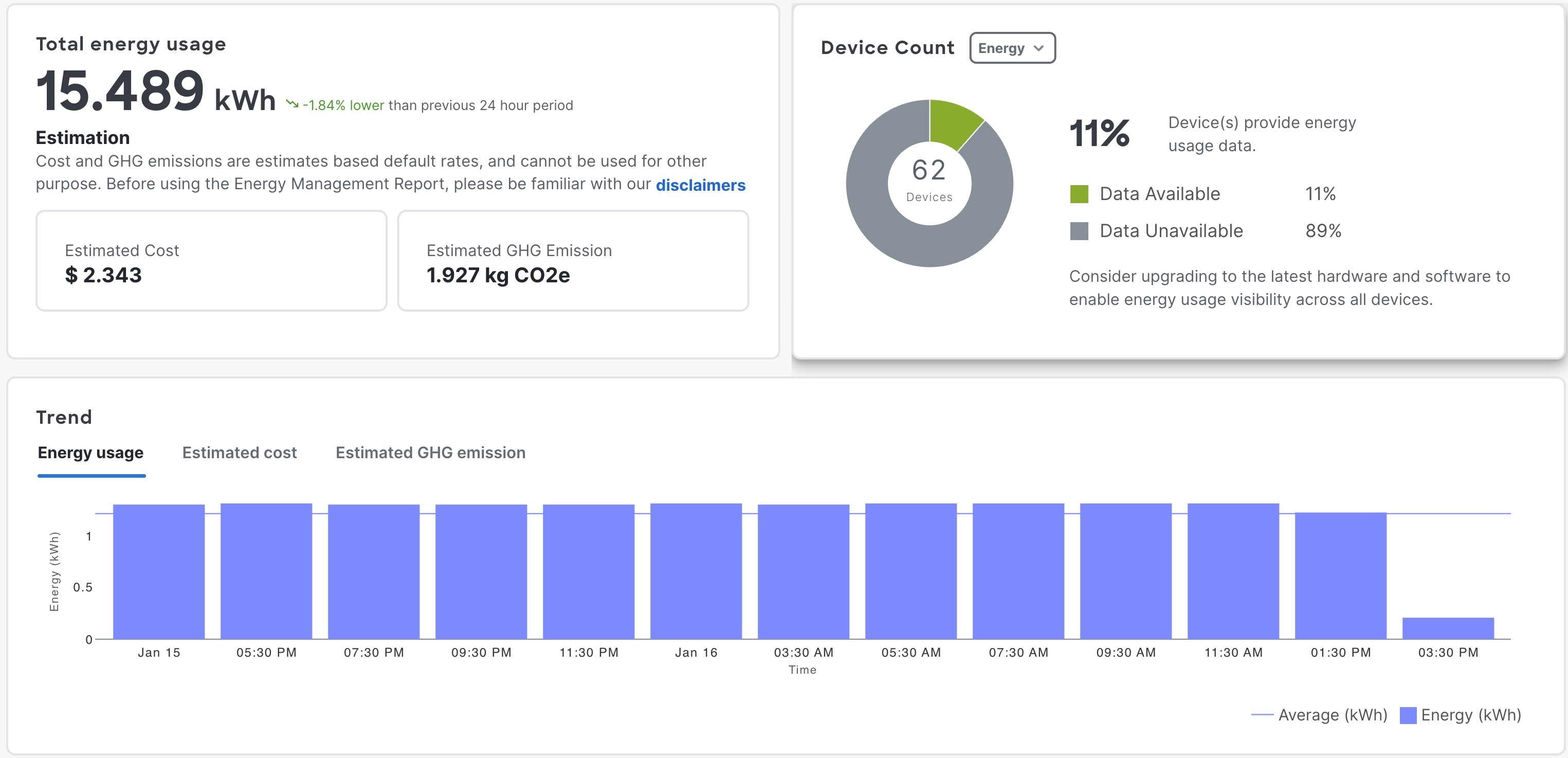This feature introduces a new dashboard that displays the Cisco SD-WAN Manager power utilization, energy usage, device capability, and consumption data.