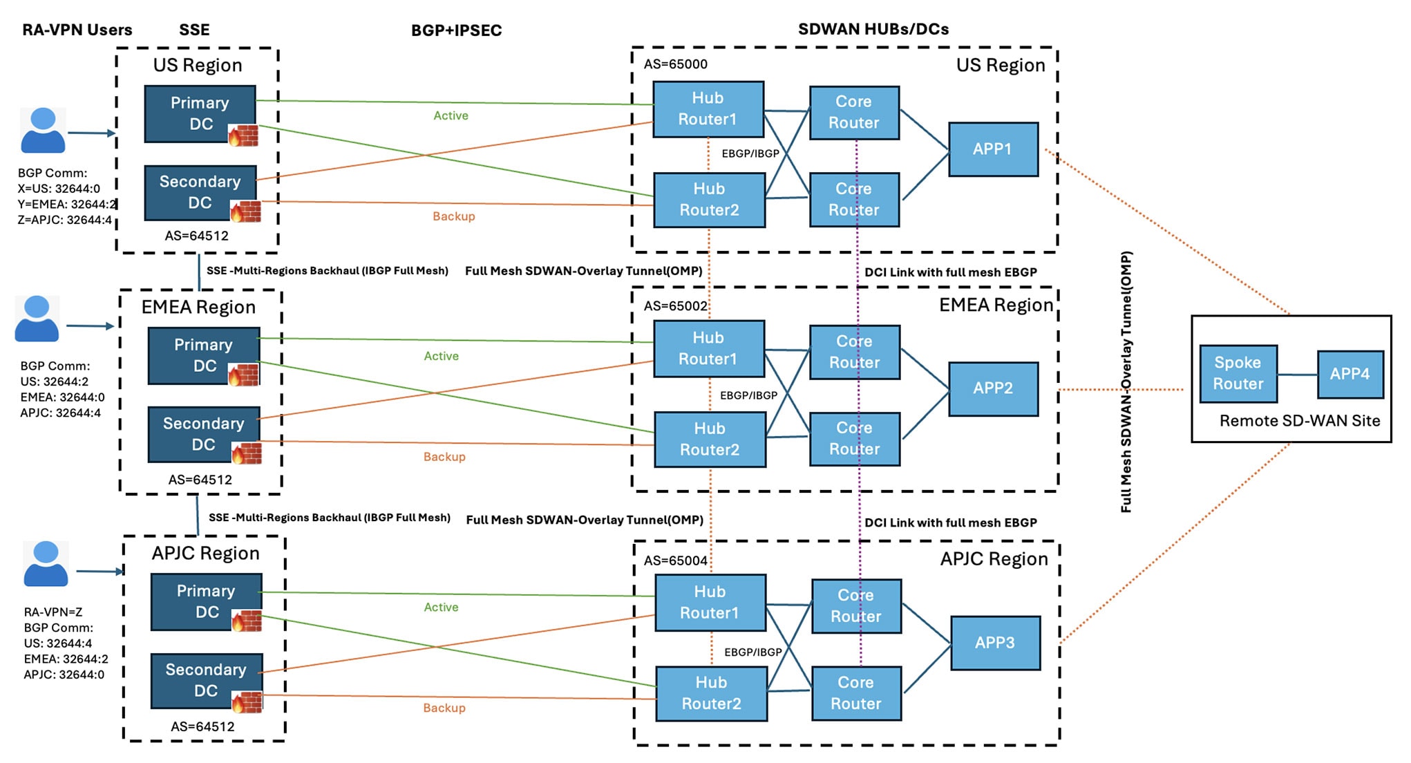 BGP backbone with Multi-region Backhaul capabilities. For more information, see Cisco SASE Design Guide.