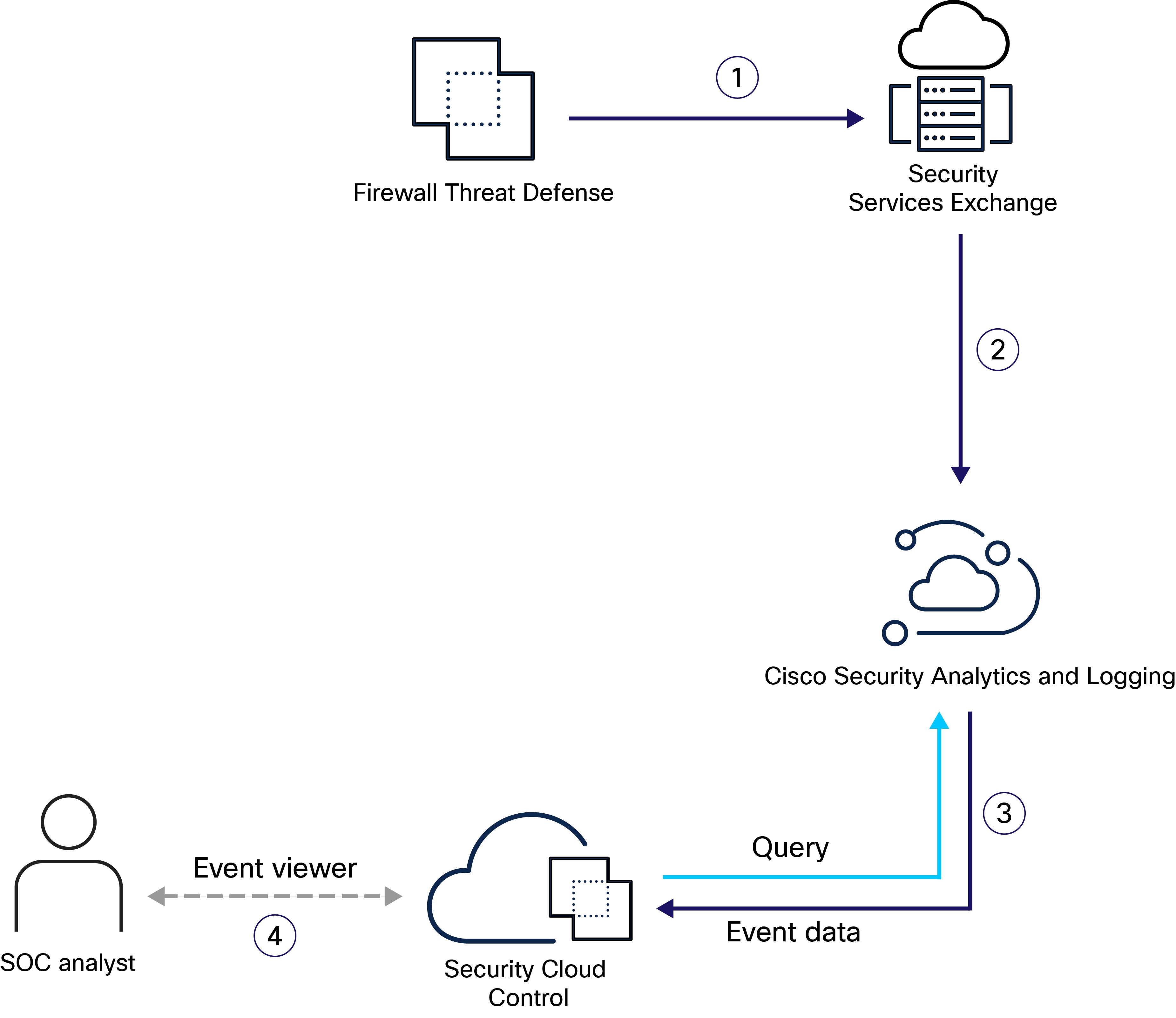 Cisco Security Analytics and Logging (SAL) allows you to capture supported types of security events from all of your firewall devices and view them in one place in Security Cloud Control. The events are stored in the Cisco cloud and viewable from the Event Logging page, where you can filter and review them to gain a clear understanding of what security rules are triggering in your network.