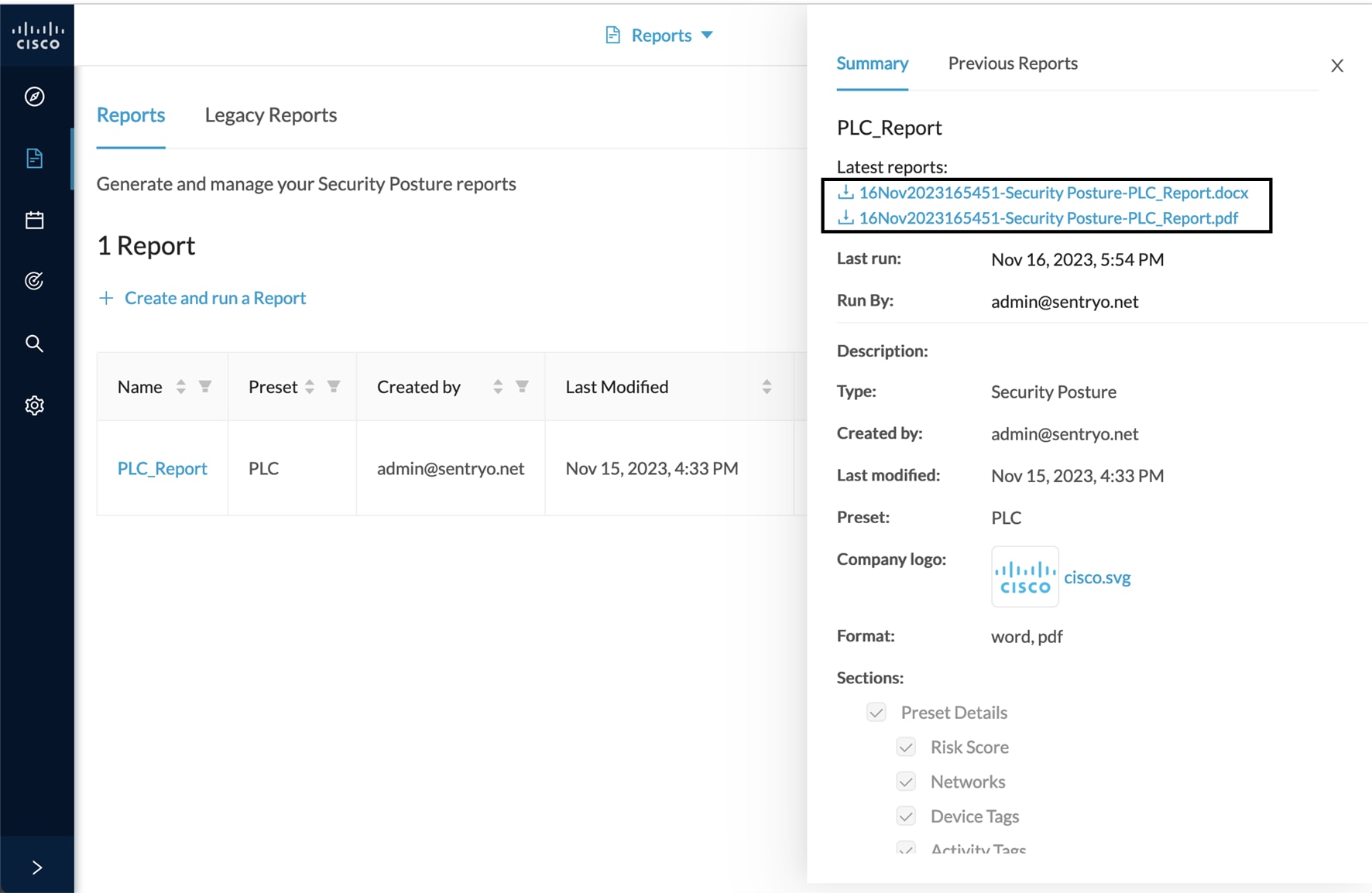 Security posture reports allow you to export industrial network data from the traffic captured and processed by Cisco Cyber Vision.