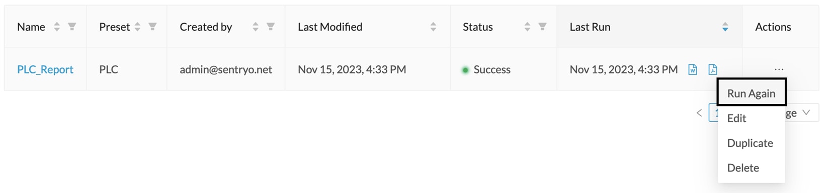 Click Save and run. The new report appears in the list with the status Processing. It should eventually turn to Success after a few moment once the report is generated. ![]() |