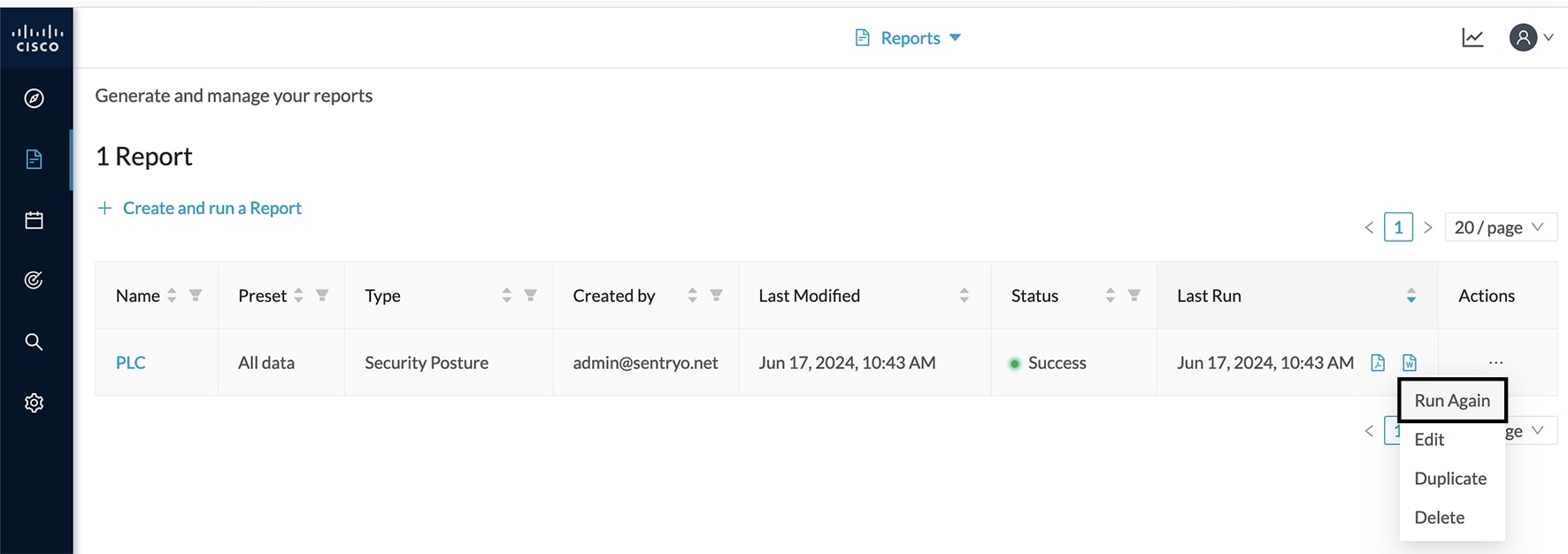 To generate a new report, click Run Again under Actions. ![]() |
