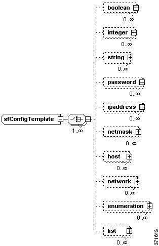 The following list describes the child elements available to the item_type element, which are similar to the child elements of the config_template element; the only difference is that item_type child elements do not use the required attribute. Each instance of the item_type element can use only one child element: