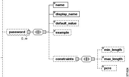 The following diagram illustrates the child and grandchild elements of the password element instance.
