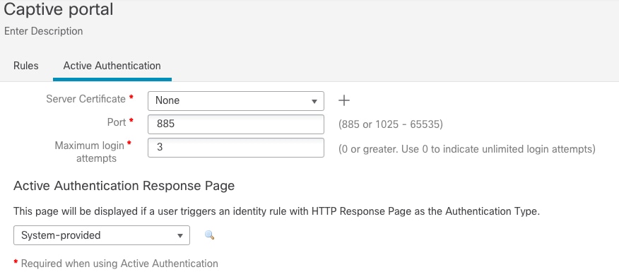 Captive portal is one of the authoritative identity sources supported by the Firepower System. It is an active authentication method where users authenticate onto the network using a managed device.